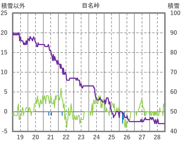| 日 | 時 | 気温 | 降水 | 風向/風速 | 日照 | 積雪 | 降雪 |