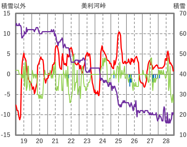 | 日 | 時 | 気温 | 降水 | 風向/風速 | 日照 | 積雪 | 降雪 |