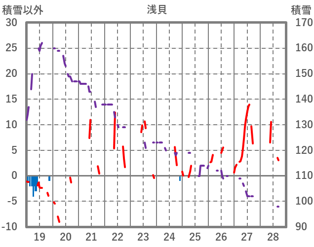 | 日 | 時 | 気温 | 降水 | 風向/風速 | 日照 | 積雪 | 降雪 |