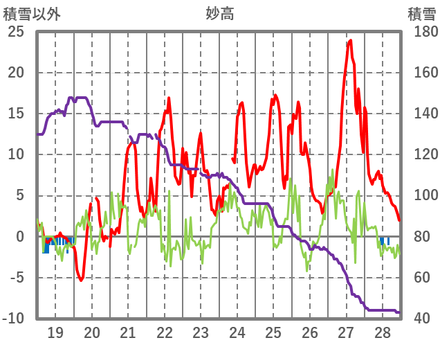 | 日 | 時 | 気温 | 降水 | 風向/風速 | 日照 | 積雪 | 降雪 |