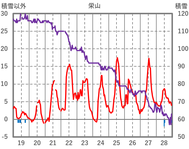 | 日 | 時 | 気温 | 降水 | 風向/風速 | 日照 | 積雪 | 降雪 |