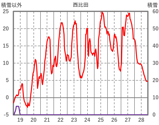 | 日 | 時 | 気温 | 降水 | 風向/風速 | 日照 | 積雪 | 降雪 |
