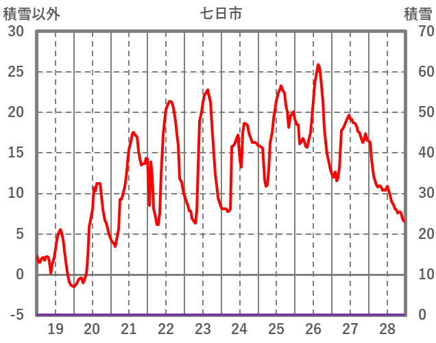 | 日 | 時 | 気温 | 降水 | 風向/風速 | 日照 | 積雪 | 降雪 |