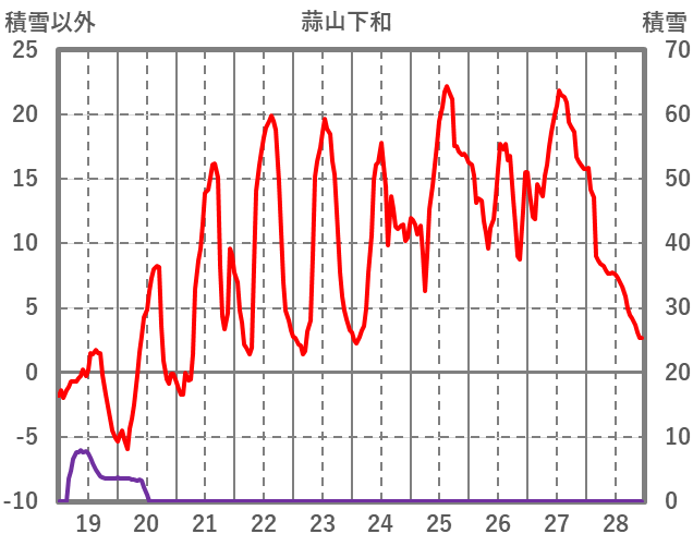 | 日 | 時 | 気温 | 降水 | 風向/風速 | 日照 | 積雪 | 降雪 |