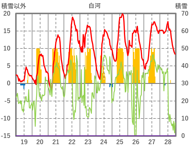 | 日 | 時 | 気温 | 降水 | 風向/風速 | 日照 | 積雪 | 降雪 |