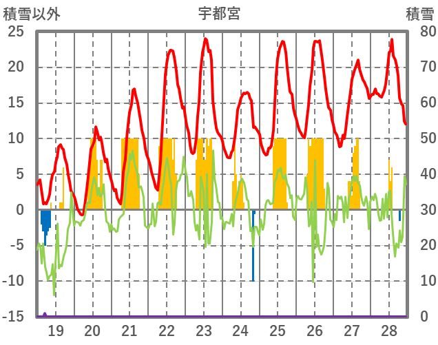 | 日 | 時 | 気温 | 降水 | 風向/風速 | 日照 | 積雪 | 降雪 |