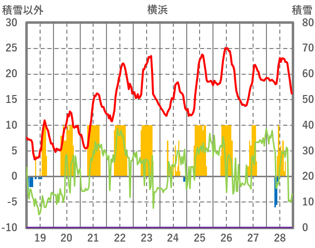 | 日 | 時 | 気温 | 降水 | 風向/風速 | 日照 | 積雪 | 降雪 |