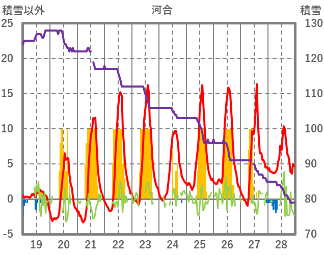 | 日 | 時 | 気温 | 降水 | 風向/風速 | 日照 | 積雪 | 降雪 |