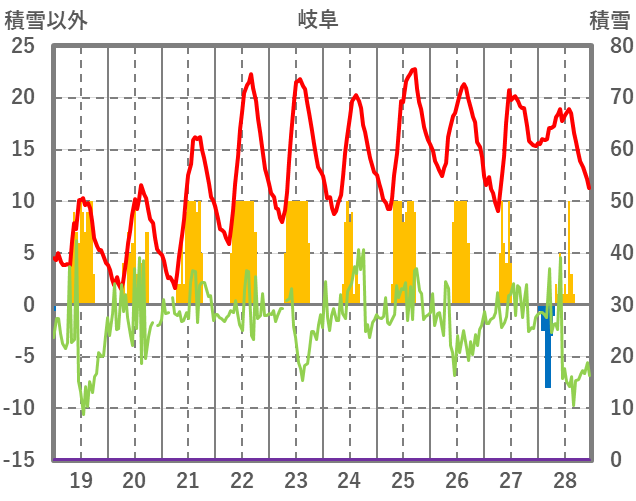 | 日 | 時 | 気温 | 降水 | 風向/風速 | 日照 | 積雪 | 降雪 |
