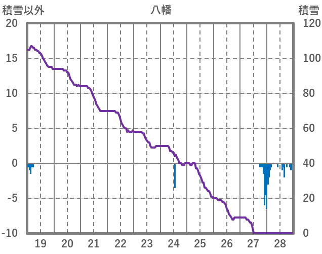 | 日 | 時 | 気温 | 降水 | 風向/風速 | 日照 | 積雪 | 降雪 |