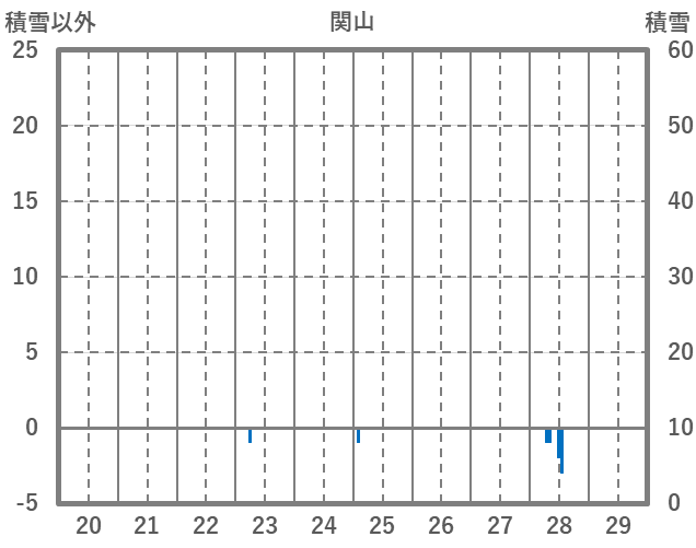 | 日 | 時 | 気温 | 降水 | 風向/風速 | 日照 | 積雪 | 降雪 |