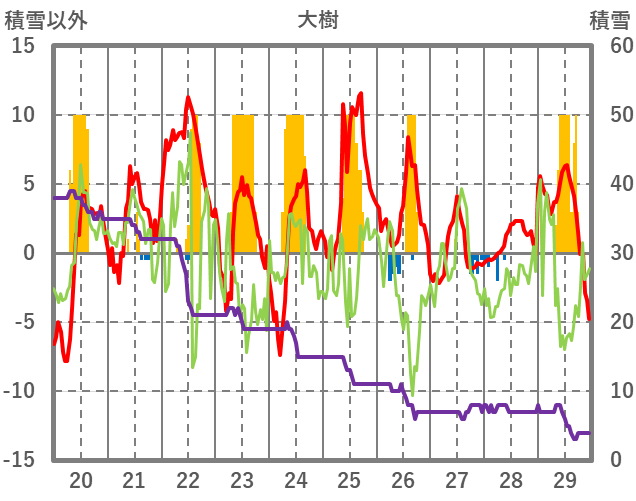 | 日 | 時 | 気温 | 降水 | 風向/風速 | 日照 | 積雪 | 降雪 |