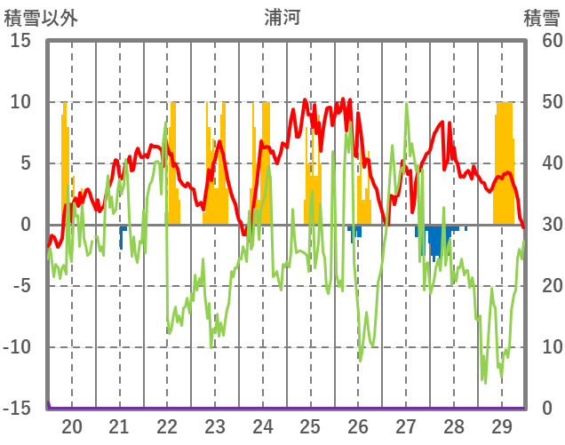 | 日 | 時 | 気温 | 降水 | 風向/風速 | 日照 | 積雪 | 降雪 |
