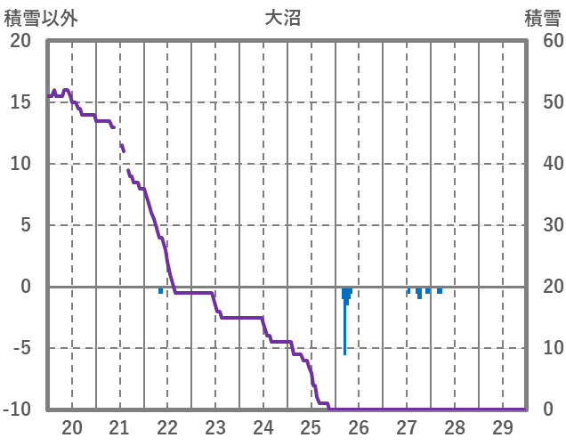 | 日 | 時 | 気温 | 降水 | 風向/風速 | 日照 | 積雪 | 降雪 |