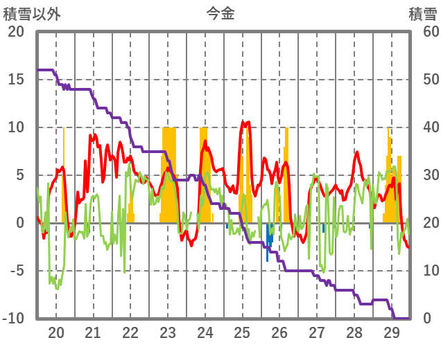 | 日 | 時 | 気温 | 降水 | 風向/風速 | 日照 | 積雪 | 降雪 |