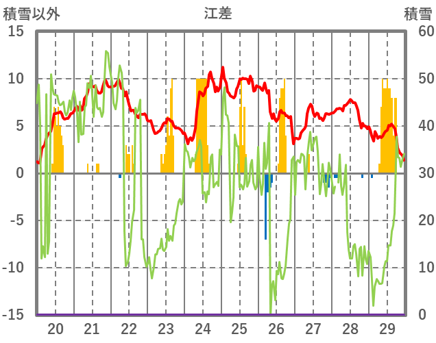| 日 | 時 | 気温 | 降水 | 風向/風速 | 日照 | 積雪 | 降雪 |