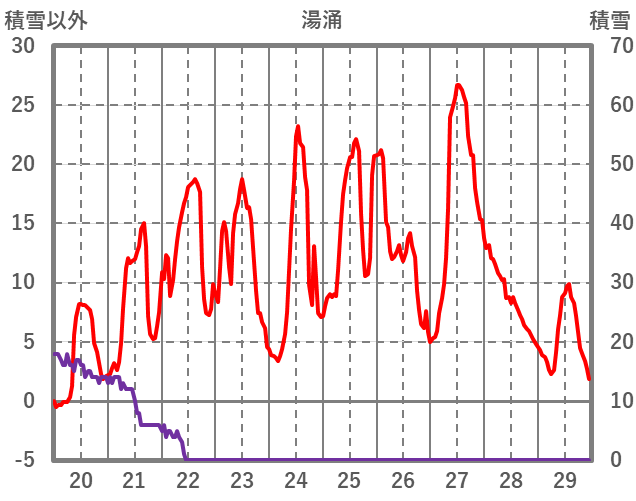 | 日 | 時 | 気温 | 降水 | 風向/風速 | 日照 | 積雪 | 降雪 |