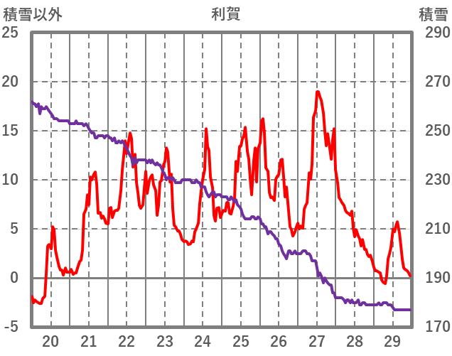 | 日 | 時 | 気温 | 降水 | 風向/風速 | 日照 | 積雪 | 降雪 |