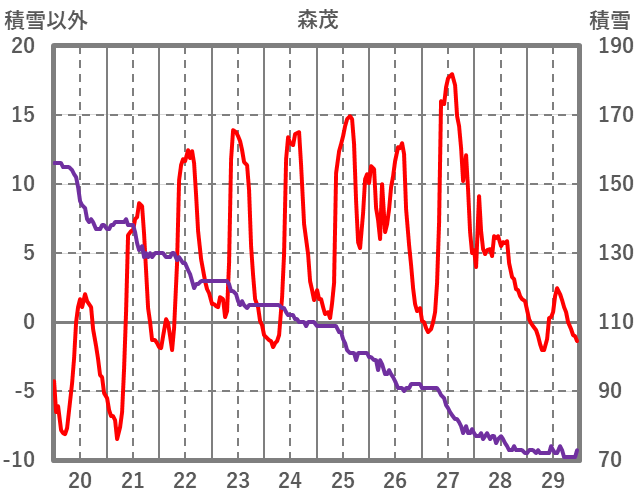 | 日 | 時 | 気温 | 降水 | 風向/風速 | 日照 | 積雪 | 降雪 |
