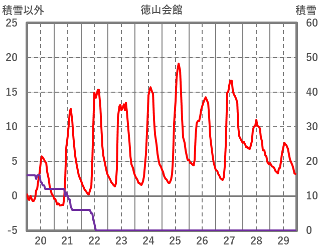| 日 | 時 | 気温 | 降水 | 風向/風速 | 日照 | 積雪 | 降雪 |