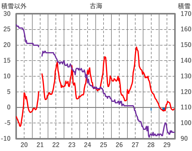 | 日 | 時 | 気温 | 降水 | 風向/風速 | 日照 | 積雪 | 降雪 |
