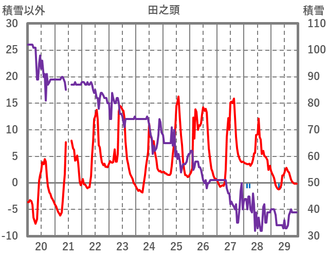 | 日 | 時 | 気温 | 降水 | 風向/風速 | 日照 | 積雪 | 降雪 |