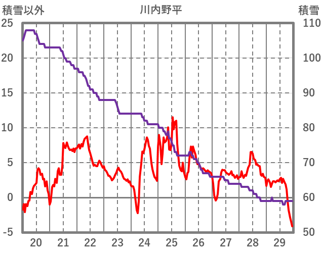 | 日 | 時 | 気温 | 降水 | 風向/風速 | 日照 | 積雪 | 降雪 |