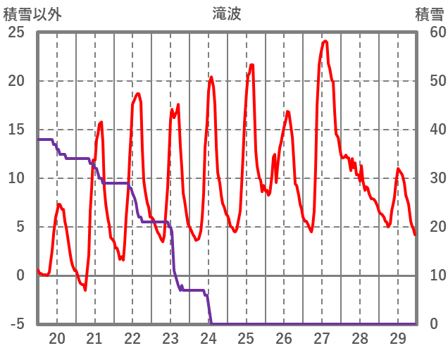 | 日 | 時 | 気温 | 降水 | 風向/風速 | 日照 | 積雪 | 降雪 |