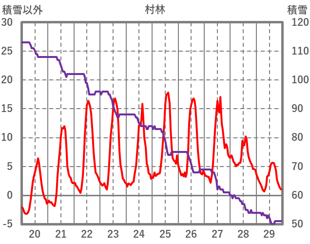 | 日 | 時 | 気温 | 降水 | 風向/風速 | 日照 | 積雪 | 降雪 |
