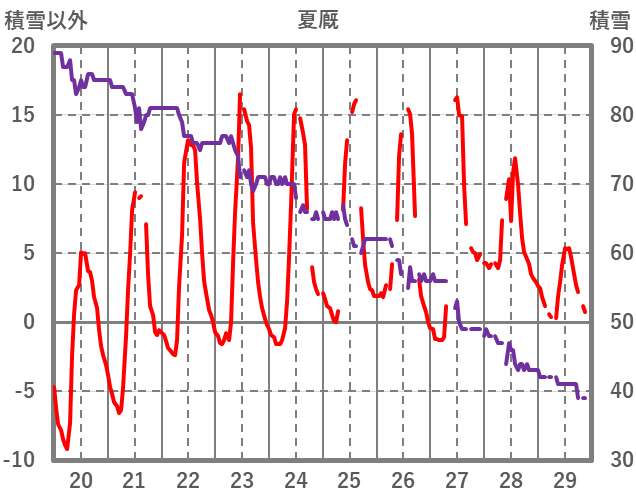 | 日 | 時 | 気温 | 降水 | 風向/風速 | 日照 | 積雪 | 降雪 |