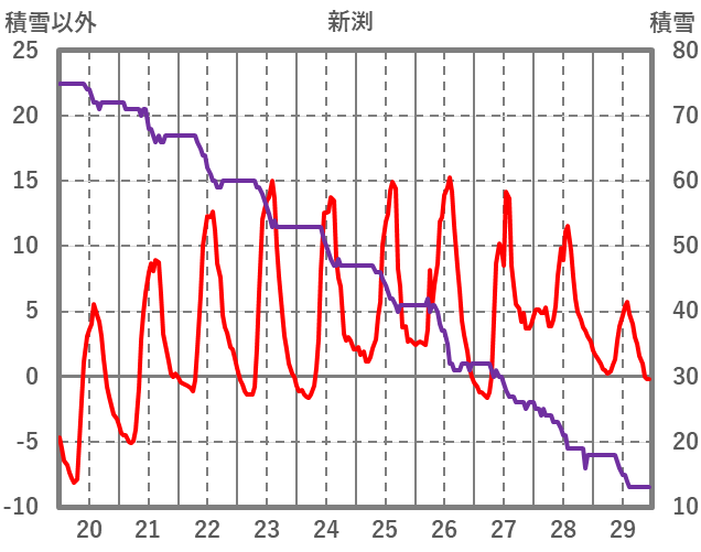 | 日 | 時 | 気温 | 降水 | 風向/風速 | 日照 | 積雪 | 降雪 |