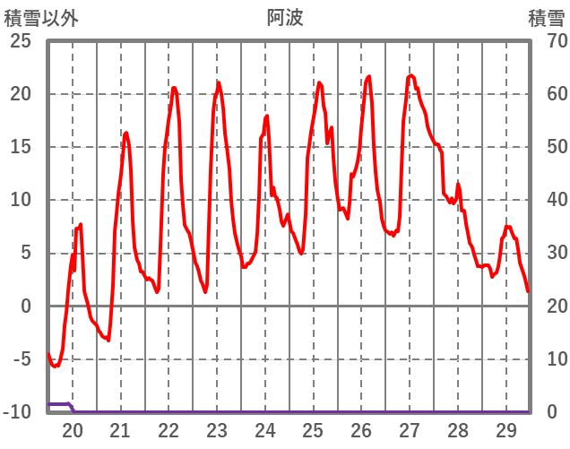 | 日 | 時 | 気温 | 降水 | 風向/風速 | 日照 | 積雪 | 降雪 |
