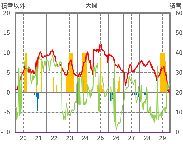 | 日 | 時 | 気温 | 降水 | 風向/風速 | 日照 | 積雪 | 降雪 |