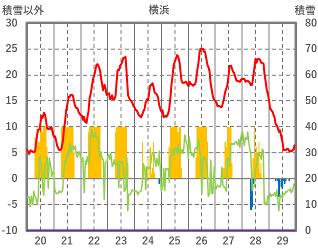 | 日 | 時 | 気温 | 降水 | 風向/風速 | 日照 | 積雪 | 降雪 |