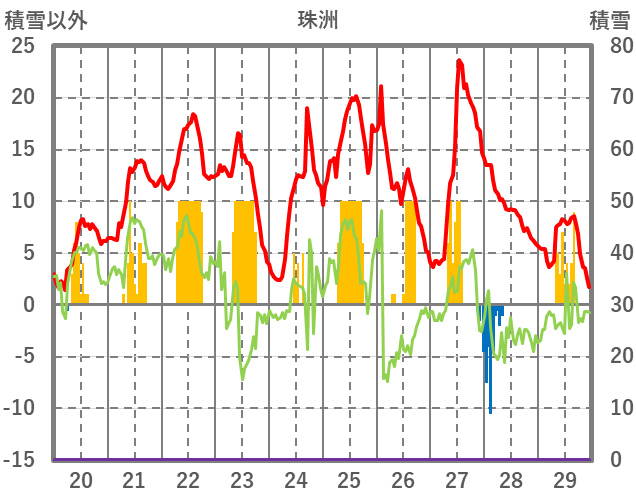 | 日 | 時 | 気温 | 降水 | 風向/風速 | 日照 | 積雪 | 降雪 |