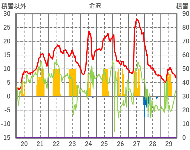 | 日 | 時 | 気温 | 降水 | 風向/風速 | 日照 | 積雪 | 降雪 |