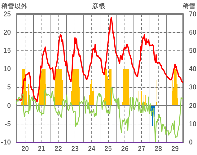 | 日 | 時 | 気温 | 降水 | 風向/風速 | 日照 | 積雪 | 降雪 |