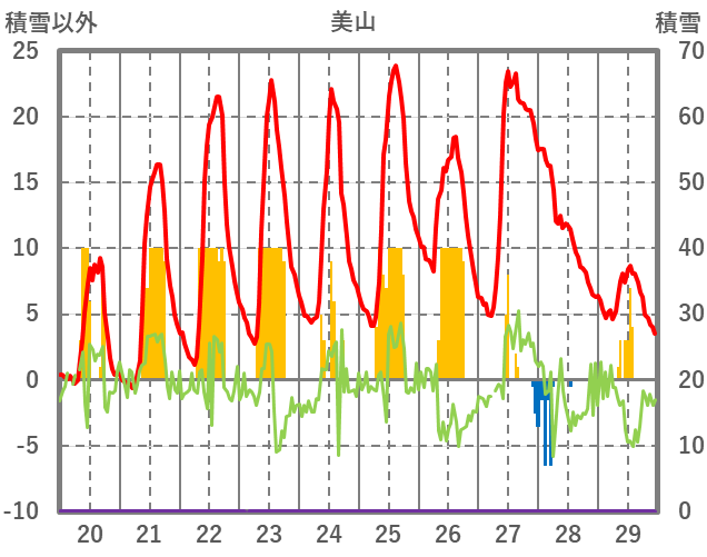 | 日 | 時 | 気温 | 降水 | 風向/風速 | 日照 | 積雪 | 降雪 |