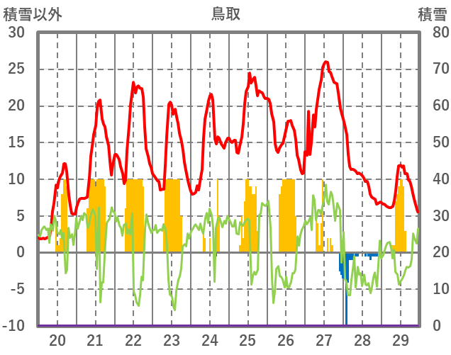 | 日 | 時 | 気温 | 降水 | 風向/風速 | 日照 | 積雪 | 降雪 |