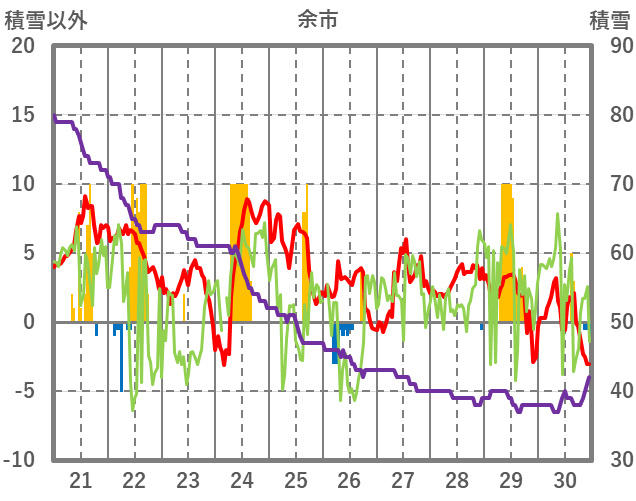| 日 | 時 | 気温 | 降水 | 風向/風速 | 日照 | 積雪 | 降雪 |