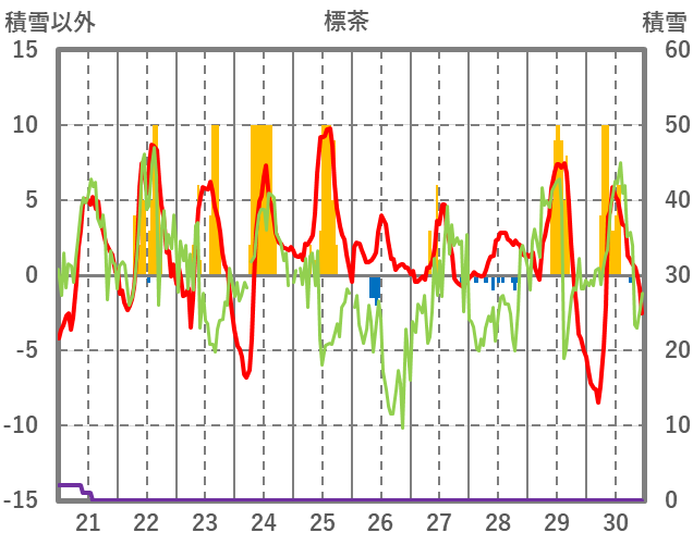| 日 | 時 | 気温 | 降水 | 風向/風速 | 日照 | 積雪 | 降雪 |
