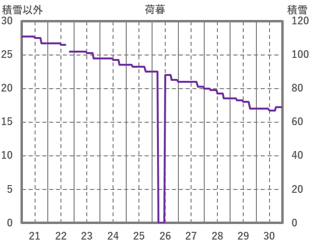 | 日 | 時 | 気温 | 降水 | 風向/風速 | 日照 | 積雪 | 降雪 |