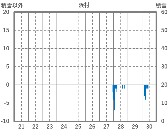| 日 | 時 | 気温 | 降水 | 風向/風速 | 日照 | 積雪 | 降雪 |