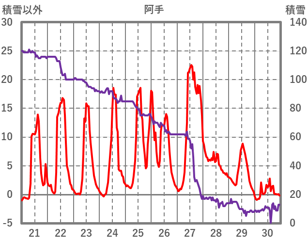 | 日 | 時 | 気温 | 降水 | 風向/風速 | 日照 | 積雪 | 降雪 |