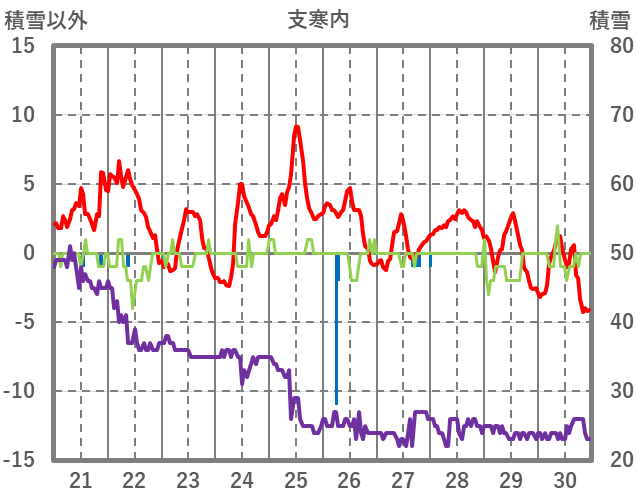| 日 | 時 | 気温 | 降水 | 風向/風速 | 日照 | 積雪 | 降雪 |