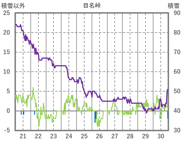 | 日 | 時 | 気温 | 降水 | 風向/風速 | 日照 | 積雪 | 降雪 |
