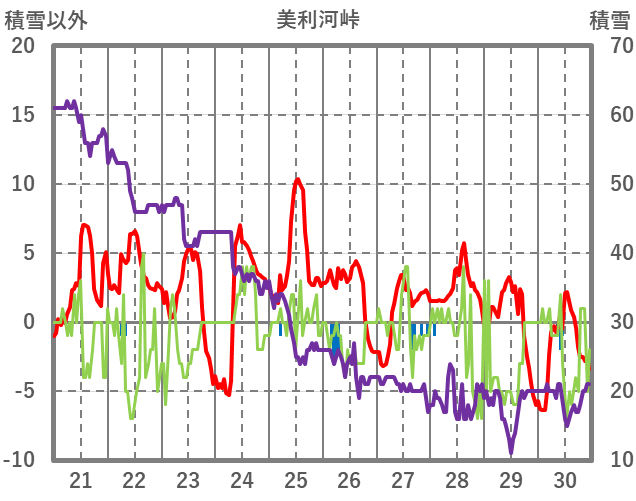 | 日 | 時 | 気温 | 降水 | 風向/風速 | 日照 | 積雪 | 降雪 |