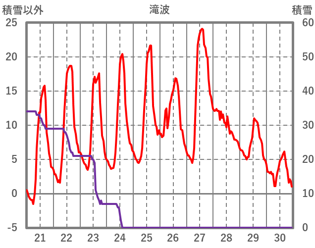 | 日 | 時 | 気温 | 降水 | 風向/風速 | 日照 | 積雪 | 降雪 |