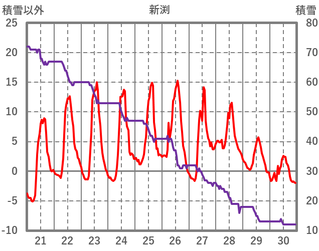 | 日 | 時 | 気温 | 降水 | 風向/風速 | 日照 | 積雪 | 降雪 |