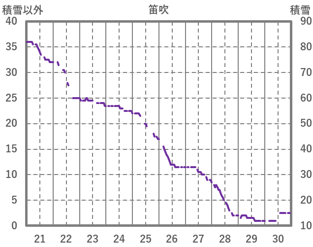 | 日 | 時 | 気温 | 降水 | 風向/風速 | 日照 | 積雪 | 降雪 |